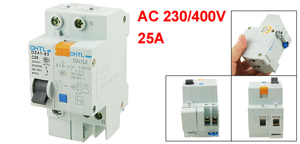 Product Name Earth Leakage Circuit Breaker Model DZ47-63 Rated Voltage AC 230/400V Rated Current 25A Number of Poles 1 Neutral +N Rated Breaking Capacity 6000A