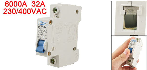 Product Name Circuit Breaker Model Number DZ47-63 C32 Rated Circuit Breaking Capacity 6000A Rated Current 32A Rated Voltage 230/400VAC Pole Quantity 1 Total Size (Approx) 7.7 x 1.8 x 6.5 cm / 3" x 0.7" x 2.5" (L*W*H) Material Plastic, Electric Components Color As the Picture Show Weight 82g Package Content 1 x Circuit Breaker - Reviews