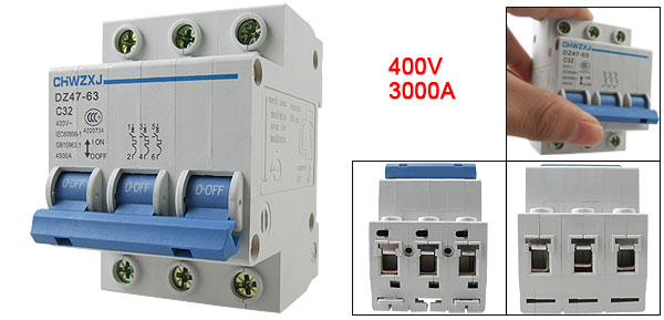 Product Name Circuit Breaker Model DZ47-63 C32 Material Plastic, Electric Components Shell Frame Size Rated Current 63A Rated Voltage AC 400V Rated Circuit Breaking Capacity 3000A Rated Current 32A Total Size (Approx.) 7.7 x 6.5 x 5.2cm / 3" x 2.5" x 2" (L * W * T ) Number of Poles 3 Color As Picture Shown Weight 260g Package Content 1 x Circuit Breaker - Reviews