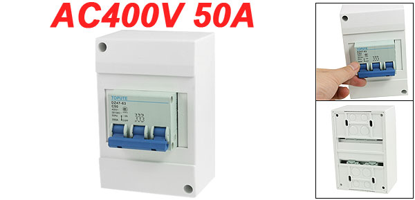 Product Name Circuit Breaker w Cover Model No. DZ47-63 C50 Material Plastic, Electric Components Rated Voltage AC 400V Rated Current 50A Breaking Capacity 3000A Frequency 50Hz Total Size (Approx.) 12.8 x 8.8 x 7cm / 5" x 3.4" x 2.7" (L*W*T) Number of Poles 3 Color White, Gray, Blue Weight 343g Package Content 1 x Circuit Breaker w Cover - Reviews
