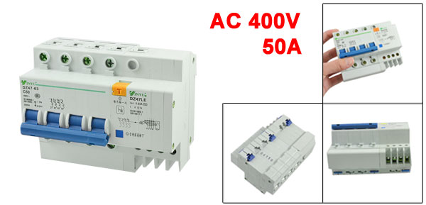 DZ47-63 C50 AC 400V 50A 4 Poles On Off Switch Residual Current Circuit Breaker