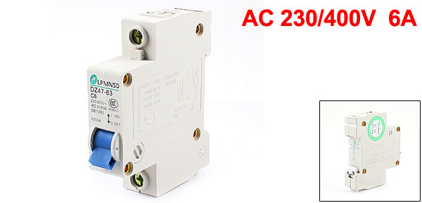 Product Name Miniature Circuit Breaker Model Number DZ47-63 C6 Rated Circuit Breaking Capacity 6000A Rated Voltage AC 230/400V Rated Current 6A Poles 1 Pole Rail Mounting 35mm DIN Rail Overall Size (Approx) 77 x 67 x 17mm/ 3" x 2.6" x 0.67" (L*W*T ) Material Plastic, Electric Components Color Off White Weight 85g Package Content 1 x Miniature Circuit Breaker - Reviews