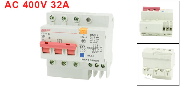 Product Name Miniature Circuit Breaker + Residual Current Breaker Miniature Circuit Breaker Model: DZ47LE-63 Rated Circuit Breaking Capacity: 4500A Rated Voltage: AC 400V Rated Current: 63A Poles: 3 Residual Current Breaker Leakage Action Current: 30mA Leakage Action Time: =<0.1s Overall Size (Approx.) 9.3 x 9.3 x 6.5cm/3.7" x 3.7" x 6.5"(L*W*T ) Material Plastic, Electric Components