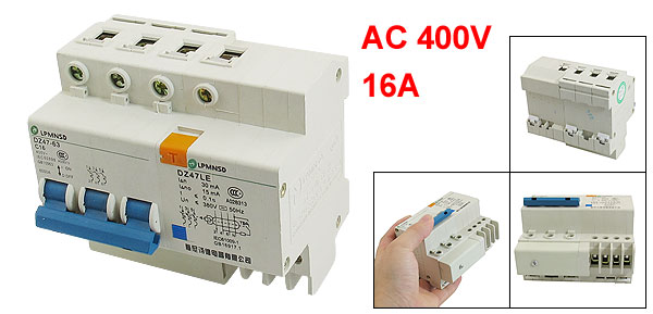 DZ47-63 DZ47LE 16A 400VAC 6000A 3 Pole Mini ELCB Earth Leakage Circuit Breaker