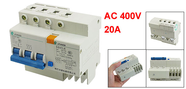 DZ47-63 DZ47LE 20A 400VAC 6000A 3 Pole Mini ELCB Earth Leakage Circuit Breaker