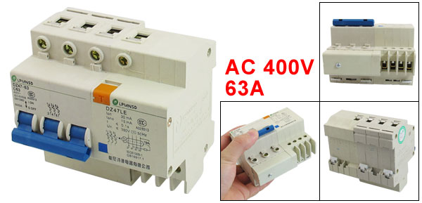 DZ47-63 DZ47LE 63A 400VAC 6000A 3 Pole Mini ELCB Earth Leakage Circuit Breaker