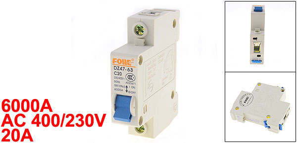 Product Name Moulded Case Circuit Breaker Model Number DZ47-63 C20 Rated Circuit Breaking Capacity 6000A Rated Voltage AC 400/230V Rated Current 20A Frequency 50Hz Poles 1Pole Overall Size (Approx) 78 x 72 x 17mm/ 3.1" x 2.8" x 0.67" (L*W*H ) Material Plastic, Electric Components Color As Picture Shown Weight 91g Package Content 1 x Moulded Case Circuit Breaker
