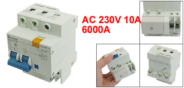 DetailsDZ47LE-32 230VAC 10A 2P 6000A Breaking Capacity Earth Leakage Circuit Breaker  Product Name Circuit Breaker Model Number DZ47LE-32 C10 Rated Circuit Breaking Capacity 6000A Rated Current 10A Rated Voltage 230VAC Rated Frequency 50Hz Number of Poles 2 Rated Residual Operating Current 0.03A Break-Time Max 0.1s Mounting Type DIN Dail Total Size (Approx) 9.3 x 6.3 x 7.4cm/ 3.6" x 2.5" x 2.9" (L*W*H) Material Plastic, Electric Components Color As Picture Shown Weight 267g Package Content 1 x Circuit Breaker