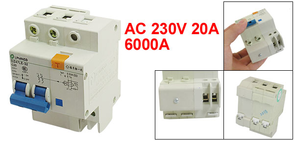 Product Name Circuit Breaker Model Number DZ47LE-32 C20 Rated Circuit Breaking Capacity 6000A Rated Current 20A Rated Voltage 230VAC Rated Frequency 50Hz Number of Poles 2 Rated Residual Operating Current 0.03A Break-Time Max 0.1s Mounting Type DIN Dail Total Size (Approx) 9.3 x 6.3 x 7.4cm/ 3.6" x 2.5" x 2.9" (L*W*H) Material Plastic, Electric Components Color As Picture Shown Weight 263g Package Content 1 x Circuit Breaker - Reviews