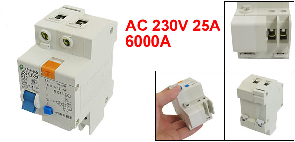 Product Name Circuit Breaker Model Number DZ47LE-32 C25 Rated Circuit Breaking Capacity 6000A Rated Current 25A Rated Voltage 230VAC Rated Frequency 50Hz Number of Poles 1 Rated Residual Operating Current 30mA Rated Residual No Operating Current Max 15mA Break-Time Max 0.1s Mounting Type DIN Dail Total Size (Approx) 9.3 x 4.5 x 6.6cm/ 3.6" x 1.8" x 2.6" (L*W*H) Material Plastic, Electric Components Color As Picture Shown Weight 185g Package Content 1 x Circuit Breaker - Reviews