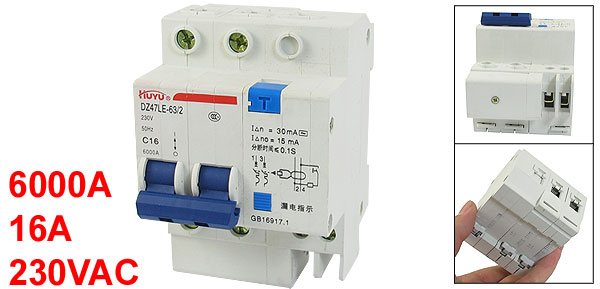 Product Name Circuit Breaker Model Number DZ47LE-63 C16 Rated Circuit Breaking Capacity 6000A Rated Current 16A Rated Voltage 230VAC Rated Frequency 50Hz Number of Poles 2 Rated Residual Operating Current 0.03A Break-Time Max 0.1s Mounting Type DIN Dail Total Size (Approx) 9.3 x 6.3 x 6.5cm/ 3.6" x 2.5" x 2.55" (L*W*H) Material Plastic, Electric Components Color Off White Weight 295g Package Content 1 x Circuit Breaker - Reviews