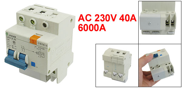Product Name Circuit Breaker Model Number DZ47LE-63 C40 Rated Circuit Breaking Capacity 6000A Rated Current 40A Rated Voltage 230VAC Rated Frequency 50Hz Number of Poles 2 Rated Residual Operating Current 0.03A Break-Time Max 0.1s Mounting Type DIN Dail Total Size (Approx) 9.4 x 6.3 x 7.6cm/ 3.7" x 2.5" x 3" (L*W*H) Material Plastic, Electric Components Color As Picture Shown Weight 264g Package Content 1 x Circuit Breaker - Reviews