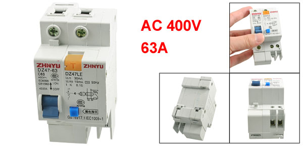 Product Name Earth Leakage Circuit Breaker Model DZ47LE Rated Voltage AC 400V 50Hz Rated Current 63A Number of Poles 1 Neutral +N Rated Breaking Capacity 4500A Rated Residual Operating Current 0.03A (30mA) Rated Residual Operating Time < 0.1S Mount Type DIN Rail Overall Size 9.5 x 4.5 x 7.5cm/ 3.7" x 1.8" x 3" (L*W*H)