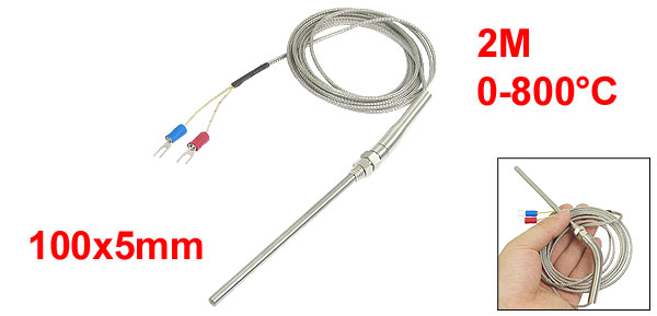E Type 100x5mm 0-800 Degree Celsius Thermocouple Probe Sensors 2M 6.5Ft