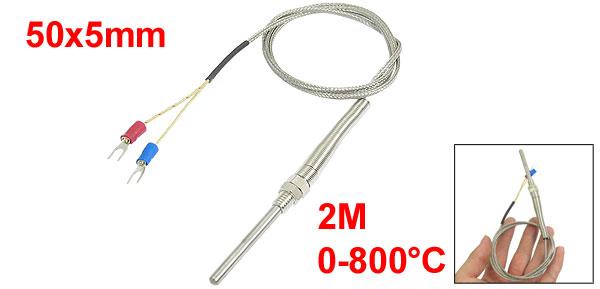 Product Name Thermocouple Transfer Type E Temperature Range 0-800C Thread Diameter 8mm / 3.1" Probe Diameter 5mm/ 0.1" Fork Terminal Spacing 4mm / 0.16" Probe Length 50mm/ 2" External Shielding Metal Shield Total Length 1m / 3.3Ft Color Silver Tone Weight 31g Package Content 1 x Thermocouple - Reviews