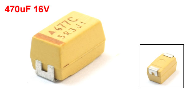 Product Name Chip Tantalum Capacitor Rated Voltage 16V Capacity 470uF Type 7343 E Model Each Size(Approx.) 7.3 x 4.3 x 4.1mm/ 0.29" x 0.17" x 0.16"(L*W*T) External Material Tantalum, Metal Weight 2g Package Content 1 x Chip Tantalum Capacitor - Reviews