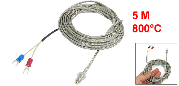 E Type 800C 8mm Thread Screw Thermocouple Temperature Measurement Sensor 5M