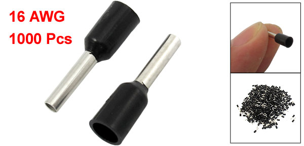 E1508 1000 Pcs Black Insulating Tube Terminals Cable Lug for 16 AWG