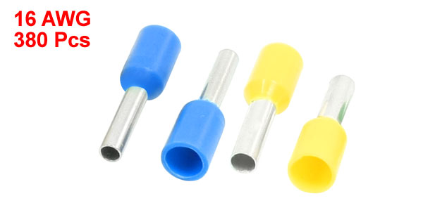 E1508 380Pcs 2mm OD Tube Pre Insulated Ferrules Blue Yellow for 16 AWG Cable