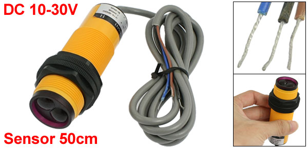 Product Name Photoelectric Switch Sending Light Infrared Rays Model E18-B05N1 Wire Type DC 3 Wire, Proximity-sensing / Diffuse Type Type NPN NO Voltage DC 10-30V Current 200mA Sensory Distance 50cm Head Diameter 1.6cm/0.6'' Body Size 2.3 x 7cm/ 0.9" x 2.8'' (Max.D*L)