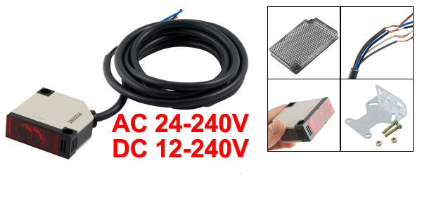 Size 5 x 5 x 1.8cm / 3.1" x 3.1" x 0.7(L*W*H) Reflector Panel Size 6 x 4 x 0.8cm/2.3'' x 1.57'' x 0.31'' (L*W*T) Cable Length 180cm/ 70.8" Weight 176g Indicator Light Color Red Material Plastic, Metal Color Black, Gray Package Content 1 x Photoelectric Switch