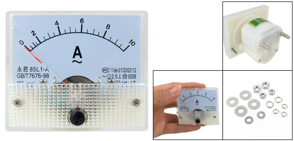 Product Name Analog Ammeter Model 85L1 Measuring Current Range AC 0-10A Accuracy Class 2.5 Meter Face Size(Approx) 6.3 x 5.5 x 1cm / 2.5" x 2.2" x 0.39"(L*W*T) Thread Size 0.28 x 0.75cm / 0.11" x 0.30"(D*L) 0.38 x 0.8cm / 0.15" x 0.3"(D*L) Overall Depth 5.7cm / 2.24" Color White Net Weight 97g Package Content 1 x Analog Ammeter Several Installing Parts - Reviews
