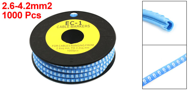 Product Name Cable Marker Model EC-1 Material PVC Design Concave Shape Marker Letter. 6 Suitable Wire 2.6-4.2mm2 Diameter(Approx.) 4mm/0.16" Each Marker Length 5mm/0.2" Color Blue Total Weignt 114g Net Weignt 101g Package Content 1000Pcs(±2%) x Cable Marker - Reviews
