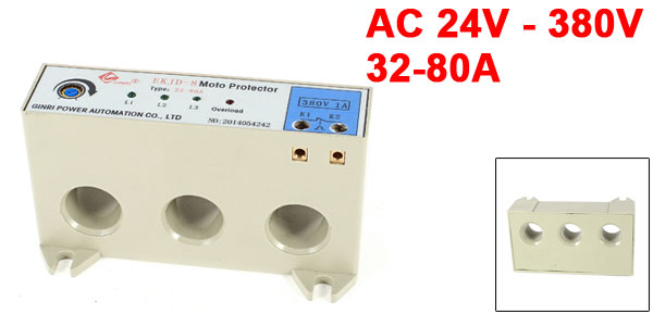 Product Name Motor Protector Type EKJD-9 Reset Time 60 ± 10s Work Mode Uninterrupted Work Mode Applicable Voltage AC 24V - 380V / 45 ~ 60 Hz Current Adjustment Scope 32-80A Applicable Motor Power 16 - 40KW Wire Hole Dia. 20mm/0.79" Control Current of Output Interface 1A/380Vac Environment Temperature -10C - +50C Relative Humidity <=90% Atmospheric Pressure 80Kpa-110Kpa Altitude no more than 200m Total Size 12.4 x 6.8 x 4.4cm/4.9" x 2.7 " x 1.7"(L*W*H) Weight 195g Package Content 1 x Motor Protector