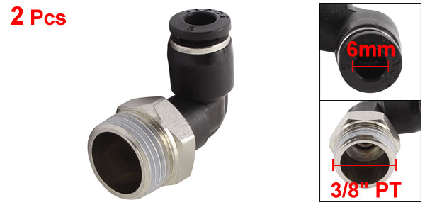 Elbow Design 6mm Hole 3/8" PT Threaded Pneumatic Quick Joint Connector 2 Pcs