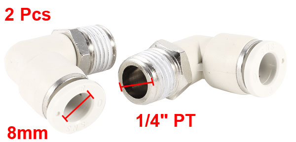 Elbow Design 8mm Hole 1/4" PT Thread Pneumatic Quick Fitting Connector 2 Pcs