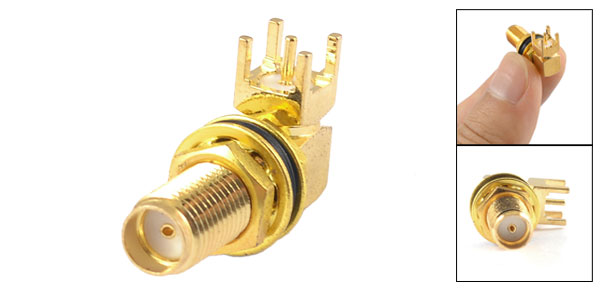 Elbow Design SMA Female Jack Panel Mount PCB Solder Adapter Gold Tone