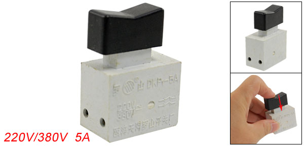 Product Name Electric Tool Switch Model No. DKP1-5A Action Type DPST, NO Lock Type With No Lock Technical Parameter 220V/380V , 5A Pillar Terminal Type M3 (3mm diameter) Size 3.4 x 1.9 x 4.9cm/ 1.3" x 0.7" x 1.9" (L*W*H) Material Plastic Color Off White, Black Weight 21g Package 1 x Electric Tool Switch - Reviews