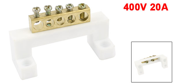 Product Name Barrier Terminal Block Power 400V 20A Material Metal,Plastic Color Bronze Tone,White Type 5 Positions Install Hole Diameter 6mm/ 0.24" Size 73 x 40 x 26mm/ 2.9" x 1.6" x 1" (L*W*H) Weight 35g Package Content 1 x Barrier Terminal Block - Reviews
