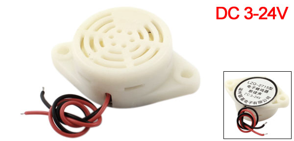 Product Name Intermittent Buzzer Model No. LZQ-2715 Voltage / Current DC 3-24V Terminal Number 2 Material Plastic, Electric Components Cable Length 10cm/3.9" Mount Hole Dia 4mm/ 0.16" Mount Hole Distance 38mm/1.5" Color Beige Size 47 x 31 x 15mm/ 1.9" x 1.2" x 0.6"(L*D*H) Weight 8g PakcageContent 1 x Intermittent Buzzer - Reviews