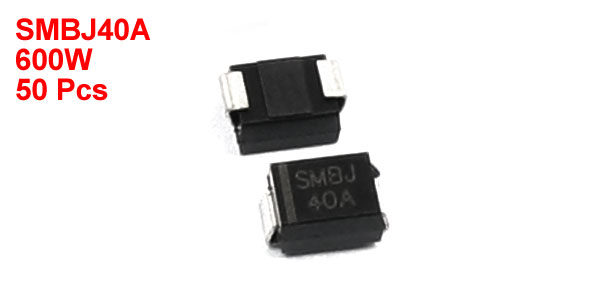 Product Name Transient Suppression Diode Model SMBJ40A Package Type DO-214AA (SMB) Power 600W Size 5.5 x 3.7 x 3mm / 0.22" x 0.15" x 0.12" (L*W*T) Color Silver Tone, Black Weight 10g Package Content 50 (±2%) x Transient Suppression Diode - Reviews