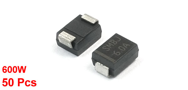Product Name Transient Suppression Diode Model SMBJ6.0A Package Type DO-214AA (SMB) Power 600W Size 5.5 x 3.7 x 3mm / 0.22" x 0.15" x 0.12" (L*W*T) Color Silver Tone, Black Weight 10g Package Content 50 (±2%) x Transient Suppression Diode - Reviews