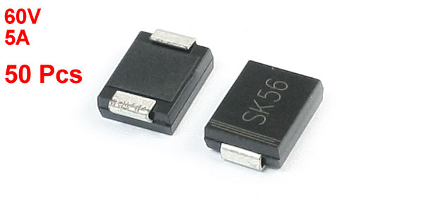 Product Name Schottky Diode Model SK56-C Package Type DO-214AB Max Repetitive Peak Reverse Voltage 60V Max Average Forward Rectified Current 5A Size 7.5 x 5.7 x 2.4mm / 0.3" x 0.23" x 0.09" (L*W*T) Color Silver Tone, Black Weight 15g Package Content 50 (±2%) x Schottky Diode - Reviews