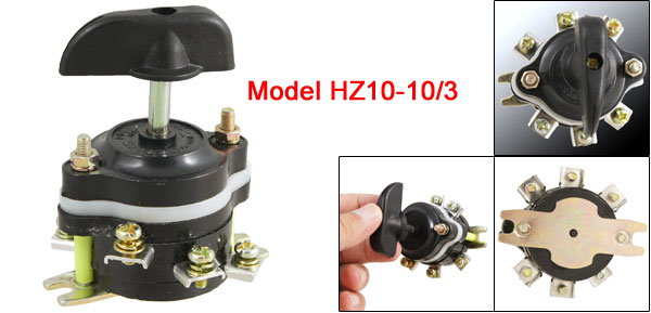 Product Name Change Over Switch Model No. HZ10-10/3 Pitch Number 3 Rated Insulation Voltage (Ui) 380V Rated Operation Voltage (Ue) AC 380V (AC-22A) DC 220V (DC-21A) Rated Operation Current (Ie) 10A (AC-22A, DC-21A) Base Mounting Distance 55mm/ 2.2" Total Size 64 x 59 x 77mm/ 2.5" x 2.3" x 3" (L*W*H) Net Weight 100g Material Plastic & Metal Main Color Black Package Content 1 x Change Over Switch - Reviews