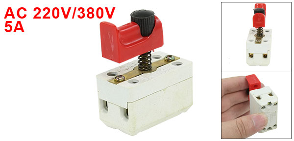 Product Name Electric Tool Switch Model No. DKZ1-5A Action Type DPST, Normally Open Lock Type No Lock Technical Parameter 5A, 220V/380V Pillar Terminal Type M3 (3mm diameter) Size 4.2 x 2.3 x 5.3cm/ 1.7" x 0.9" x 2.1" (L*W*H) Material Plastic Color Black, Off White, Red Weight 36g Package 1 x Electric Tool Switch - Reviews