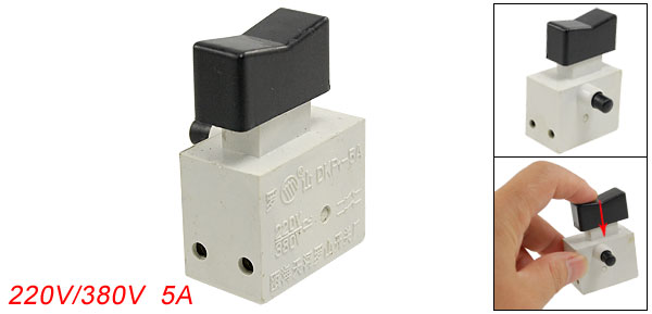 Product Name Electric Tool Switch Model No. DKP1-5A Action Type DPST, NO Lock Type Lock On Technical Parameter 220V/380V , 5A Pillar Terminal Type M3 (3mm diameter) Size 3.4 x 3.4 x 4.9cm/ 1.3" x 1.3" x 1.9" (L*W*H) Material Plastic Color Off White, Black Weight 22g Package 1 x Electric Tool Switch - Reviews