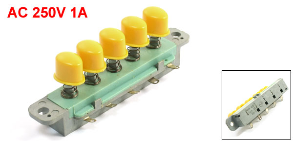 Electric Fan 5 Piano Keys Interlock Yellow Push Button Switch AC 250V 1A