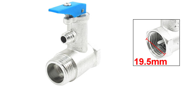 DetailsElectric Metal Water Heater Safety Relief Valve 0.7Mpa Silver Tone  Product Name Safety Valve Material Metal Color Blue, Silver Tone Pressure 0.7Mpa Male Thread Dia. 20mm/0.8" Female Thread Dia 19.5mm/0.76" Barb Diameter 8mm/0.3" Overall Size 6 x 4.5 x 2.5cm/2.4" x 1.8" x 1.0"(L*W*T) Net Weight 77g Package Content 1 x Water Heater Safety Valve