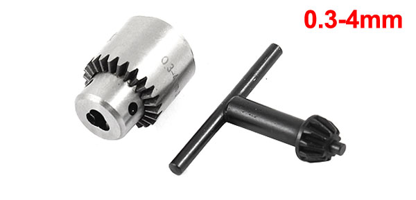 Product Name Key Type Drill Chuck Fit For Carpentry Drill Range 0.3-4mm/1/64"-5/32" Interior Hole Diameter 3mm/ 0.12", 6mm/0.24" Outside Diameter 21.5mm/0.85" Total Height 29mm/ 1.1" Chuck Key 45 x 35mm/ 1.8" x 1.4" (L*W) Main Material Metal Color Black, Silver Tone Weight 96g Package Content 1 x Drill Chuck - Reviews