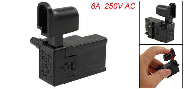 Product Name Electric Tool Switch Model No. DZKA-MH3-6 Action Type DPST, Normally Open Lock Type Lock On Technical Parameter 6A, 250V AC Pillar Terminal Type M3 (3mm diameter) Size 4.5 x 2.9 x 5cm/ 1.8" x 1.16" x 2" (L*W*H) Material Plastic Color Black Weight 21g Package 1 x Electric Tool Switch - Reviews