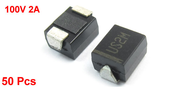 Product Name High Efficiency Rectifier Diode Model US2M Package Type DO-214AA Max Repetitive Peak Reverse Voltage 100V Max Average Forward Rectified Current 2A Size 5.5 x 3.7 x 3mm / 0.22" x 0.15" x 0.12" (L*W*T) Color Silver Tone, Black Weight 10g Package Content 50 (±2%) x High Efficiency Rectifier Diode  - Reviews