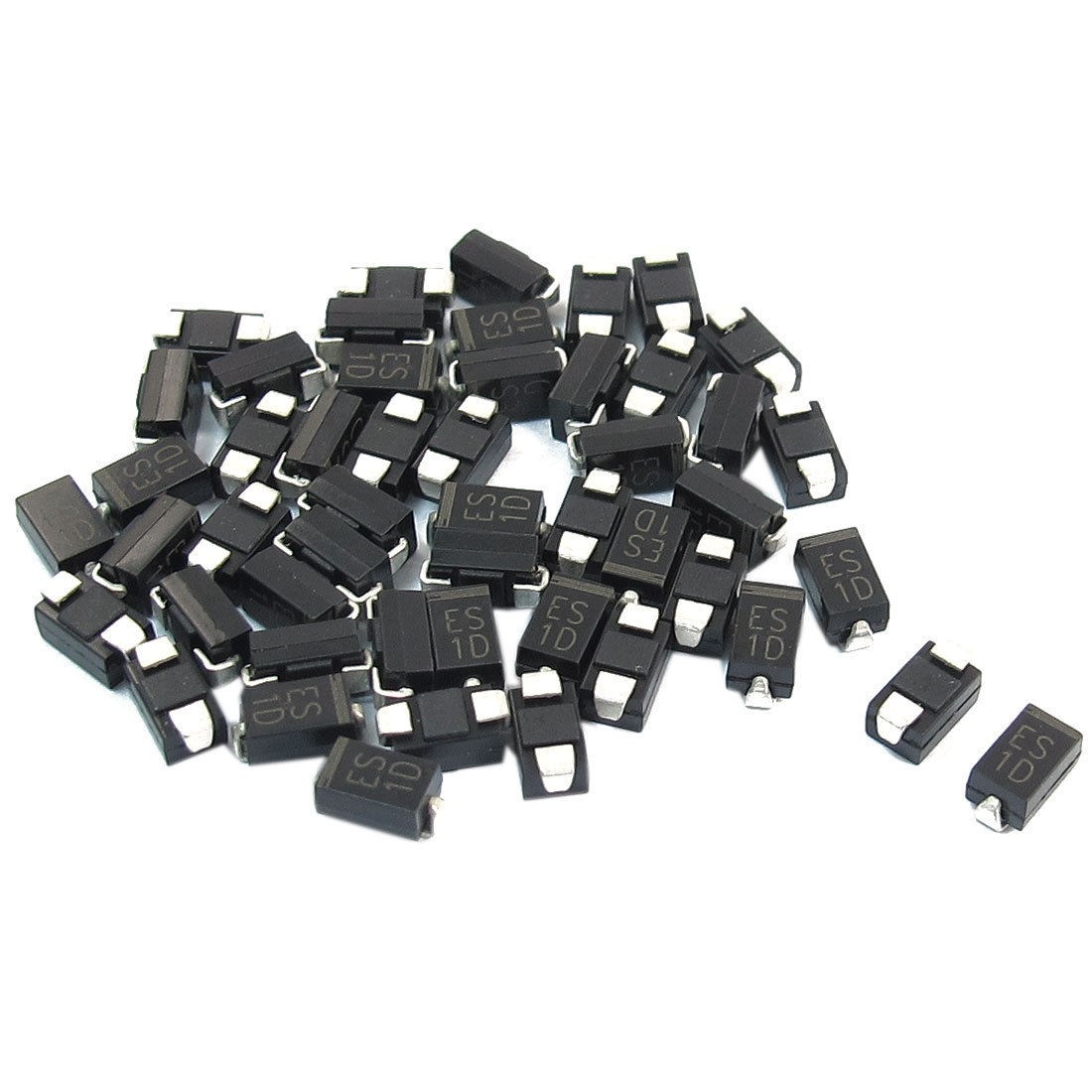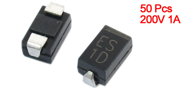 Product Name Ultra Fast Diode Model ES1D Package Type DO-214AC Max Repetitive Peak Reverse Voltage 200V Max Average Forward Rectified Current 1A Size 5 x 2.5 x 2.2mm / 0.2" x 0.1" x 0.087" (L*W*T) Color Silver Tone, Black Weight 6g Package Content 50 (±2%) x Ultra Fast Diode - Reviews