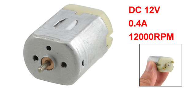 Product Name Micro Motor Rated Voltage DC 12V Rated Current 0.4A Rated Power 2.8W Rated Speed 12000RPM Body Size 30 x 24 x 18mm / 1.2" x 0.94" x 0.7"(L*W*T) Shaft Dia. 2mm/ 0.079" Total Length 41mm / 1.6" Main Color Silver Tone Material Metal, Plastic Weight 35g Package 1 x Micro Motor - Reviews