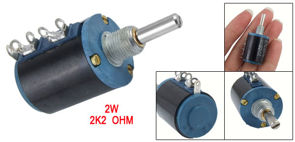Product Name Potentiometer Model WXD 3-12 Type Rotary Potentiometer Rated Power 2W Resistance Range 2K2 Ohm Resistance Tolarance +/-5% Working Voltage 160V Rotation Life 10000 Circles Threaded Part Diameter 0.78cm/ 0.3" Size 2 x 4.7cm/ 0.8" x 1.9" (D*H) Weight 17.4g Package 1 x Potentiometer - Reviews