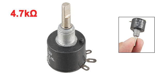 Product Name Potentiometer Model WX13-12 Type Rotary Potentiometer Rated Power 1W Resistance Value 4.7kΩ Resistance Tolarance +/-5% Working Voltage 200V Rotation Life 10000 Circles Threaded Part Diameter 0.78cm/ 0.3" Size 1.8 x 3.4cm/ 0.7" x 1.3" (D*H) Color Black & Silver Tone Weight 8.3g Package 1 x Potentiometer - Reviews