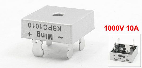 Product Name Bridge Rectifier Voltage 1000V Current 10A Dimension 2.9 x 2.9 x 1cm/1.14" x 1.14" x 0.4"(L*W*H) Pin Length 1.1cm/0.43" Material Ceramic, Metal Color Black, Silver Tone Net Weight 17g Package Content 1 x Bridge Rectifier - Reviews